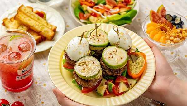 一口咬开,绵密的蛋黄、软美的肉饼、清爽的蔬菜,一起在口腔里融合、起舞。