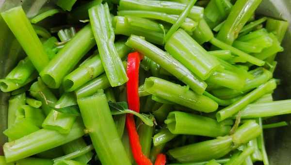1、把空心菜摘洗干净,叶子和径杆分开,切成1到2公分的段,红椒也切成相应的段,