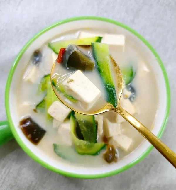 ✔黄瓜皮蛋豆腐汤