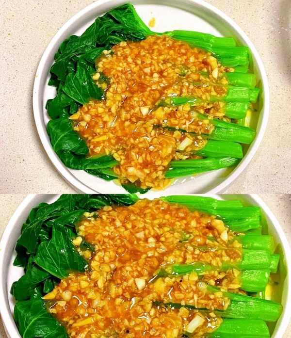 再起锅烧油,多放点蒜沫和油炒出香味,然后再加入生抽、蚝油、盐味和水,再熬一下汁,最后勾芡出锅浇在菜心上即可。