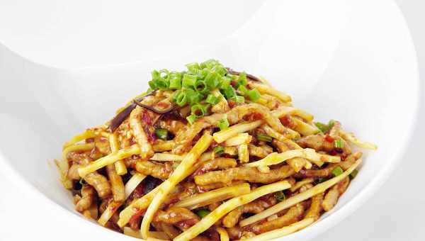 3.滑肉丝的油温不能超过三成,否则肉丝不易散籽。