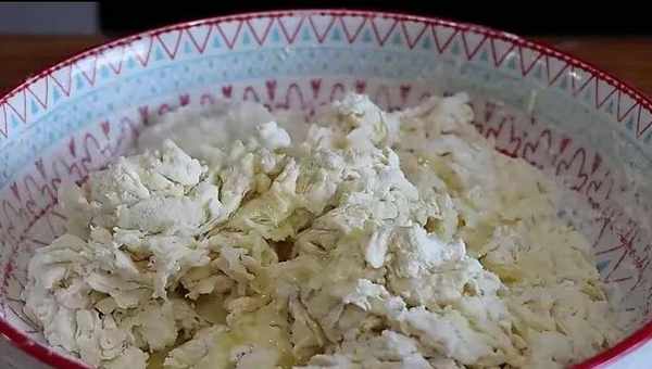 随后用手翻压和面团,面团和好以后用保鲜袋装入内面,静止放置,让面团自然醒动30分钟。当面团醒发以后,倒出来在案板上,又重新碾压几遍,直至面团有弹性为止。