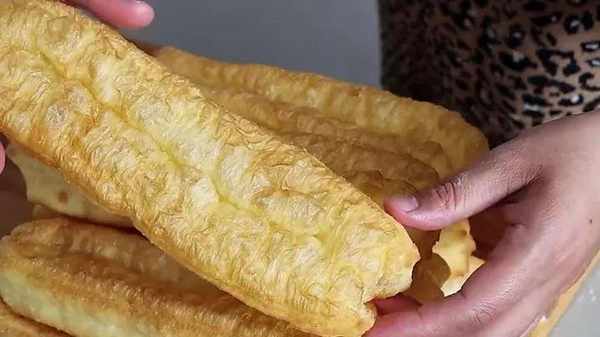 当油条出现金黄色的时候,黄色的油条已经炸熟了,捞起来控干油水,蓬松肥大的脆皮油条就出锅了,就可能食用。