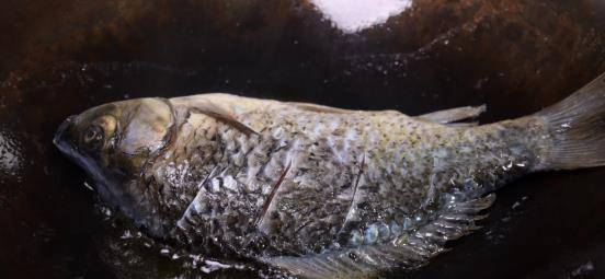1、准备一条新鲜鲤鱼,把它宰杀处理干净以后,再在鱼肉的背面给它打上花刀,方便鱼肉在烹饪的过程中入味。