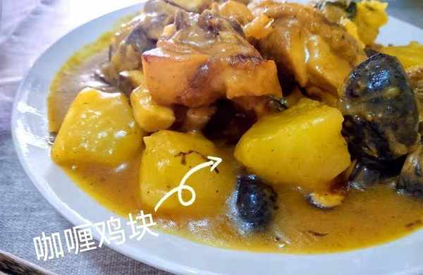 女儿爱吃咖喱鸡块,所以这顿咖喱鸡块就是特意为她做的,亮黄色的咖喱中,混合着剥落的土豆泥,再加上香菇浓郁的香味,形成一种奇异的气质,美妙至极。