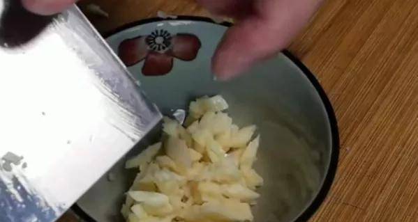 3:将大蒜捣烂,锅中放入跟平时炒菜一样多的食用油,油温三成热的时候下入大蒜,炒至金黄色即可。