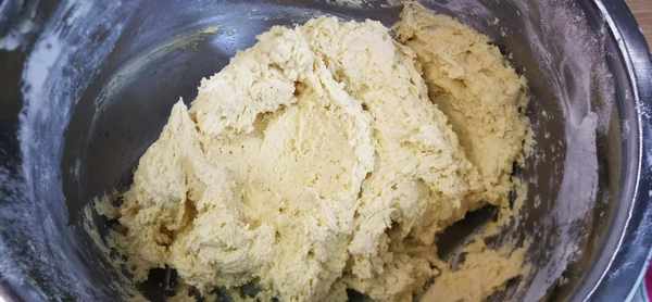 ⒌盖保鲜膜,放入冰箱冷藏40分钟至一个小时,让面团松弛和变硬一点。