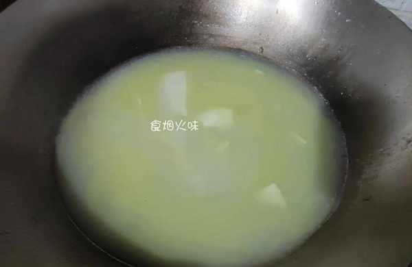 6.这些就是准备好的鱼汤了,倒入锅中,将洗净的酸笋倒入锅中;