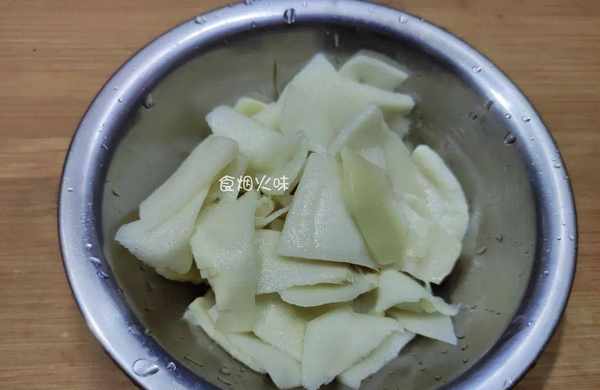 1.准备适量的酸笋,这些酸笋是老爸腌制的,酸味浓,颜色白,而且口感清脆,腌得特别好。如果你们也喜欢这个酸笋的制作方法的,之后我可以准备出一期制作过程。酸笋放在清水中冲洗干净,洗净捞出放在盆中备用;