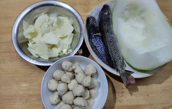 冬瓜,酸笋,丸子,鲫鱼,食盐,食用油,花椒