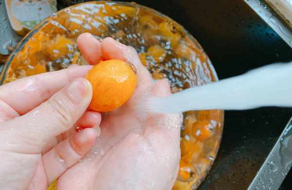 4、没有破损的枇杷放在清水中清洗几遍,把表面的绒毛清洗干净,去皮的时候会更干净;