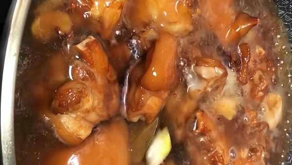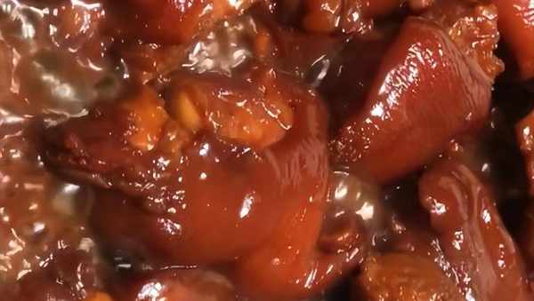 开盖大火收汁,猪蹄这样做QQ弹弹超级好吃,肉质鲜美,熟制后软糯黏糊,口口肉香,香而不腻,肉香味浓郁,让人垂涎欲滴。