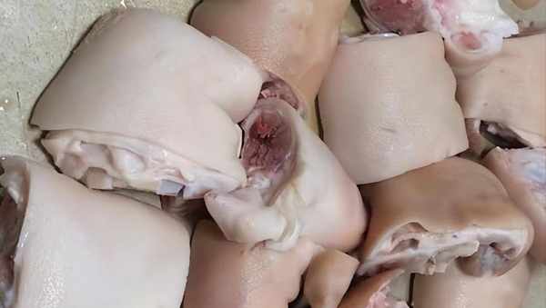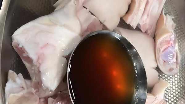 我们去市场淘两个白胖胖的猪蹄,清洗干净,从中间一分为二,改刀剁大块,冷水下锅,倒入适量料酒,啤酒中含有二氧化碳,可以改变肉的组织结构,使韧性降低,而啤酒里的蛋白酶又可以分解肉类里的胶原蛋白,转化为氨基酸和多肽,增加鲜度。捞危险沫,洗干净备用。