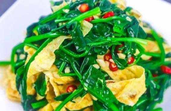 2,这道菜炒的速度要快,时间长了,空心菜易发黄。