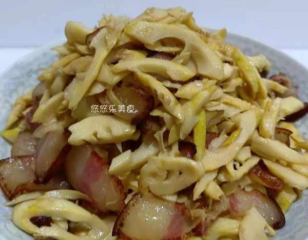 腊肉炒美笋就这样完成,有美笋的脆口还有腊肉的鲜美,这道菜的口感丰富美味。配饭好吃,而且很下饭。美笋中含有丰富的营养成分以及膳食纤维,经常吃点对身体好,现在正是季节,有遇到的话就不要错过,摘点回家,想吃的时候取出,很是方便。像今天这样,加入腊肉简单地炒一炒,出锅后的气质绝了。