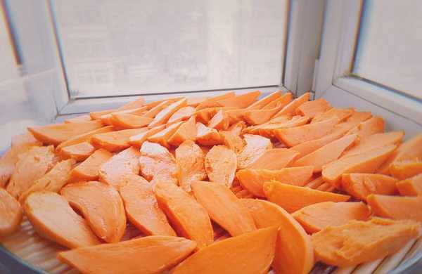 如果自己制作的红薯干量不是很大,那么只需要将红薯放到太阳底下晒干,就可以食用了。