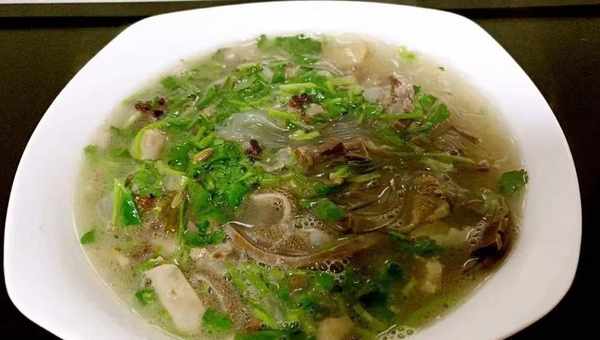 羊杂汤是由羊的肝、肚、心、肺加入秘制调料熬制而成,熬到羊杂的香气与汤融化在一起,一口下去鲜掉眉毛。