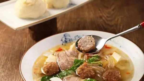 这是一道典型的回族美食,在新疆颇受欢迎,早起的新疆人经常会点一碗丸子汤配上热乎乎的油塔子。