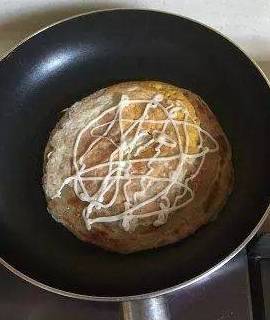 翻面后,可以挤上任意喜欢的酱料。注意火不要大,看另一面差不多好了就关火。