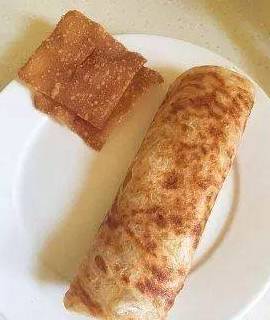 用筷子和锅铲将饼卷起,好吃的薄脆煎饼好了。