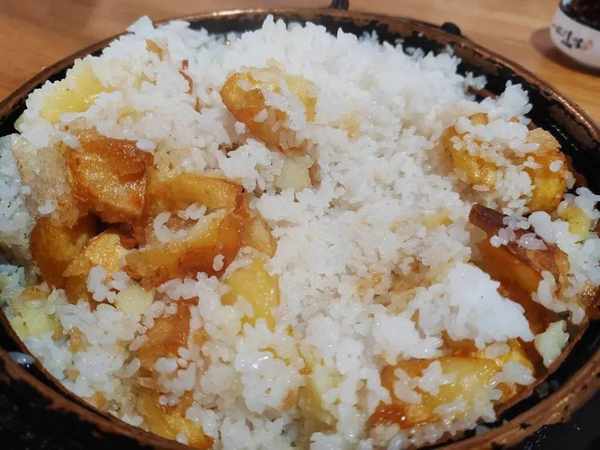 铜锅洋芋饭,洋芋色泽金黄,锅巴脆香扑鼻。吃一口,让人回味无穷。