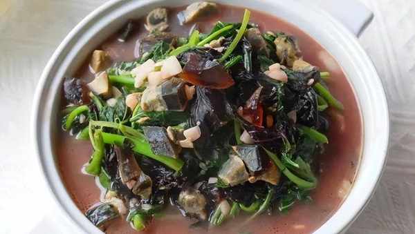 主要食材:红苋菜,皮蛋。