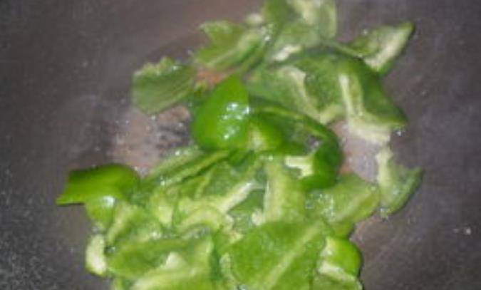 2,起锅烧油,油热后,倒入鸡蛋液炒至凝固,然后盛出,借助倒入青椒翻炒至断生。