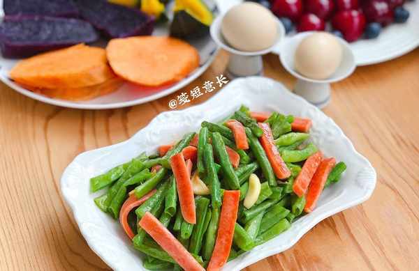 周末回郊区老家,在樱桃园采摘时阿姨送了把豇豆,早餐总要搭配一个蔬菜的,就把豆角洗净折断后焯水备用,一根火腿撕去包装后切成和豆角长度一致的细条,大蒜去皮切片。炒锅倒油后中火烧至7成热,下入蒜片爆香,随后倒入火腿和豆角煸炒,加少许食盐和蚝油调味后翻炒均匀即可。红绿搭配,营养翻倍,配早餐一点儿也不腻。