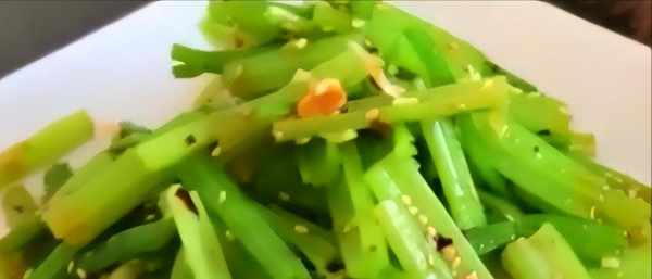 2、将芹菜丁加入盐、姜末、熟白芝麻,淋上花椒油,搅拌均匀,装盘即可。