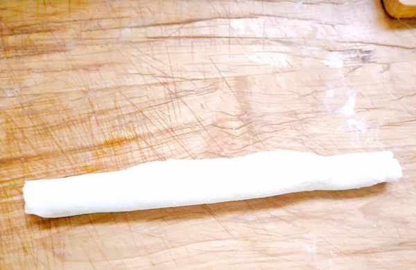 6,放在面板上,切成瓜牙状。