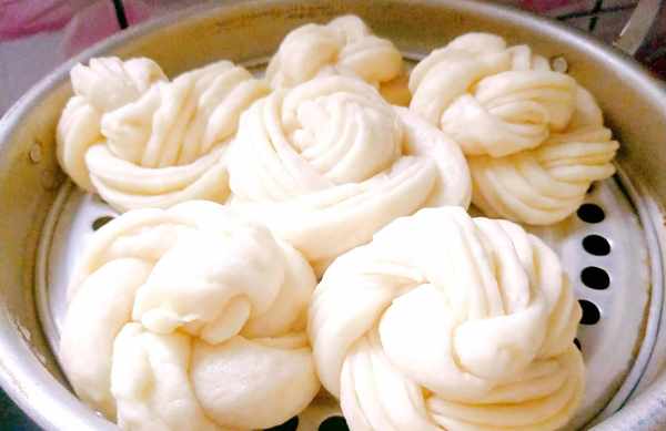 11,笼屉上均匀刷上油,把花卷冷水上笼,不开火醒发五分钟后,大火烧开上气后,蒸25分钟,关,焖一分钟取出即可装盘上桌。