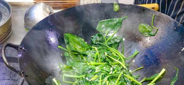 起锅添入少许食用油,放入蒜末炒出蒜香味,倒入菠菜,快速翻炒片刻,炒至菠菜断生后,起锅撤火,加入食盐2克,鸡粉1克,白糖1克提鲜,上火快速翻炒10秒钟,化开调料,就可以关火起锅装盘了。
