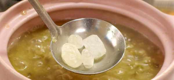 砂锅里面添入适量的清水,分别倒入绿豆和大米,开大火煮开,改小火继续煮20分钟,用勺子搅动几下,避免大米粘锅,20分钟过后,绿豆和大米都已经煮开花了,接着下入银耳,继续煮10分钟。