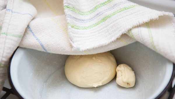 记住这一步只能加牛奶,千万不要加水,等到面团揉搓好,将它放到温暖的地方盖起来发酵,发酵至2倍大就可以使用了。