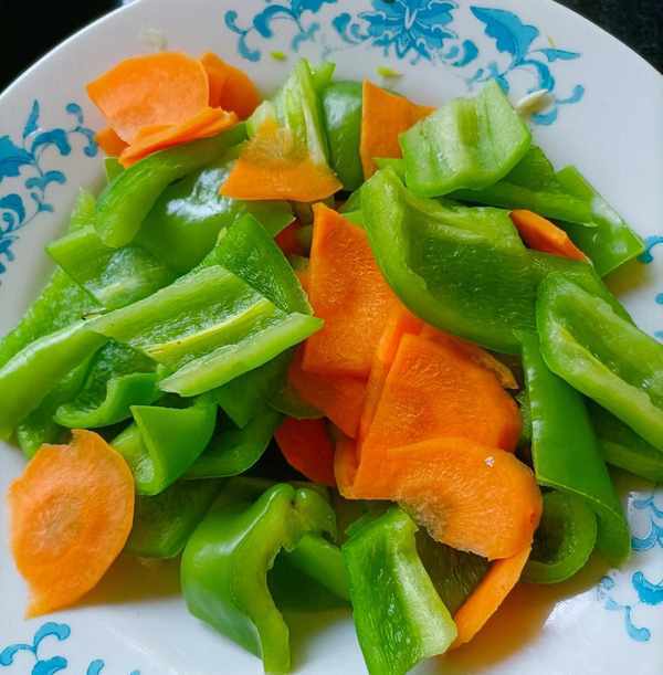 准备好辣椒胡萝卜这些配菜,洗净切块。
