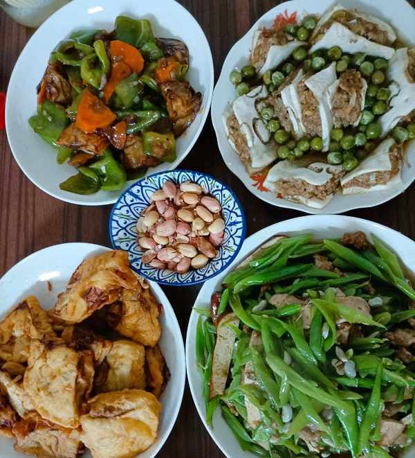 炸好茄夹,再把没装馅的茄子炸一下,再炒那两个菜,午饭就完成了。一茄三吃,喜欢的朋友可以试一试,茄子便宜了。