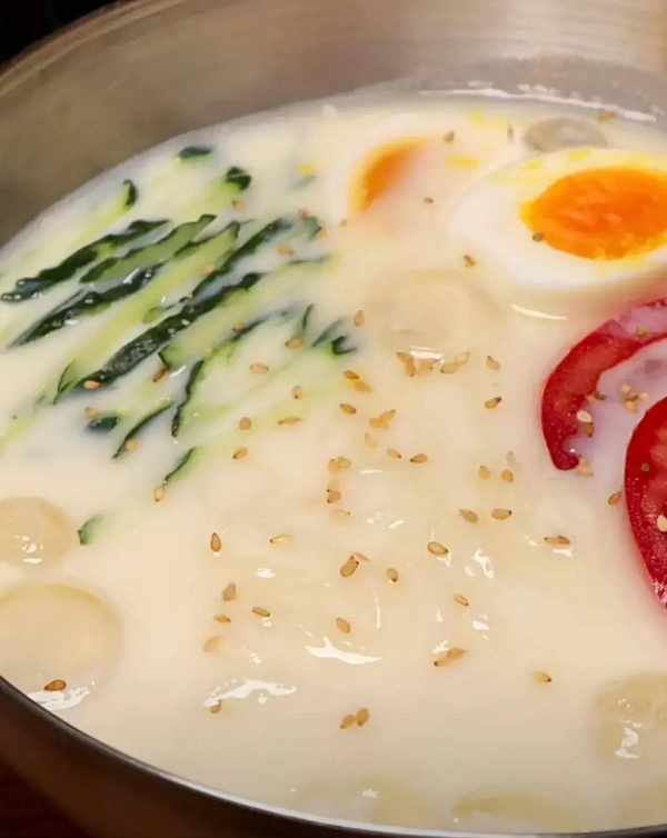 爱喝豆浆和冷面的人都沉默了吧,相信很多人会质疑这是什么神仙吃法,是不是真正的黑暗料理,小编可以告诉你不是的,味道还是很可以的,不相信的朋友自己可以在家尝试一下,味道还是可以的,有特别浓郁的豆浆味,冷面上全是豆浆汁,嗦一口满满的豆浆味道,真不错!