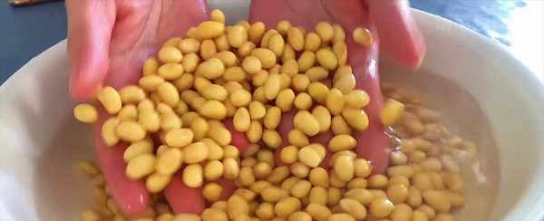 倒掉脏水之后,再次加入大量的清水,让黄豆在水里面泡上一夜。那为什么要将黄豆浸泡一夜呢?因为已经过泡发的黄豆,可以让黄豆吃起来的口感更加的细腻 ,还可以缩短烹饪的时间。另外,在泡黄豆时,中间我们可以换一两次水,如果是夏天气温高的情况下 ,我们可以放进冰箱里冷藏,这样可以避免细菌滋生,就不会让黄豆发生变质了。