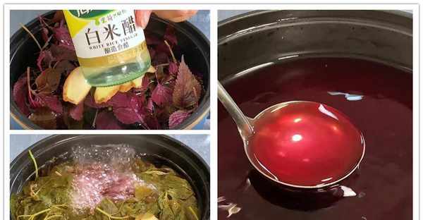 如果你家里有砂锅,那用砂锅来煮,因为砂锅具有很好的导热性,保温性能也很好,用来煮紫苏、生姜可以保留住它们最大的营养价值。把砂锅放在灶台上,将紫苏和生姜放进去,再加入大半锅清水,接着再倒入100g白米醋,记得一定要是白米醋,不要用其他的醋哟,再加入50g白糖增加甜味,最后开火煮半个小时。