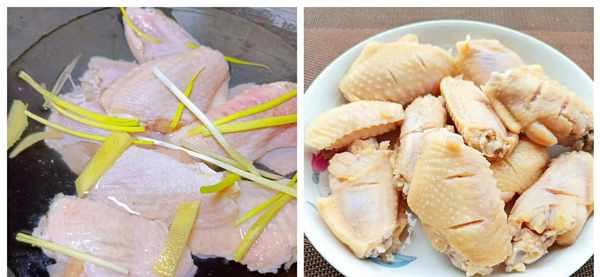 ①我们把鸡中翅搓洗一下,放入锅中。加入料酒、葱、姜去腥。大火煮开,捞出来用水冲洗一下。把鸡中翅改刀,便于入味。