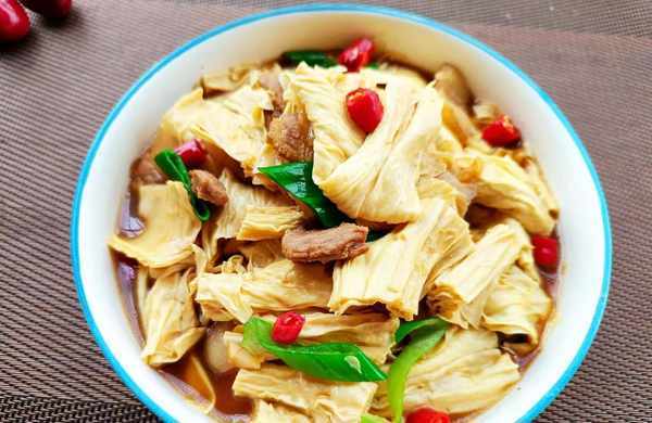 Tips:腐竹用冷水泡发,泡出来的腐竹多、柔软。加入白糖,可以促进发酵。