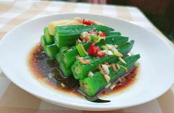 食材:秋葵300克、蒜子、生抽、食用油、盐