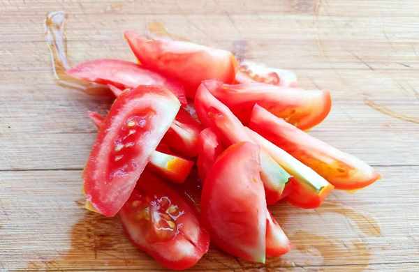 ③热锅冷油,倒入番茄煸炒,一直炒到番茄出汁为止。