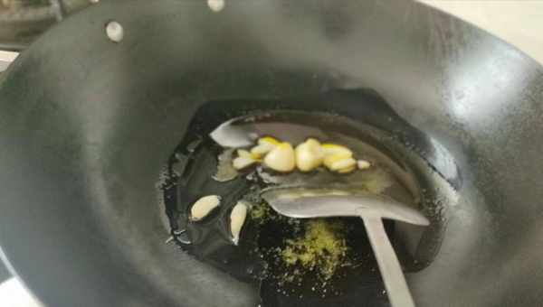 第二步,爆香。接着把葱子洗净,剥去外皮切碎备用,大蒜也洗净去皮切片备用。锅中加入2勺食用油,油热后,先放入葱子和大蒜爆香。