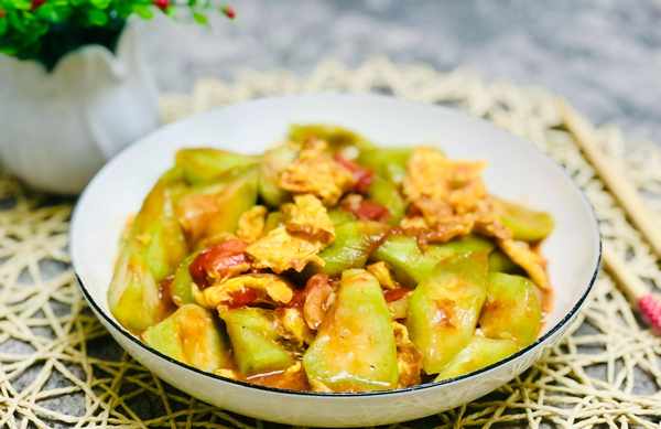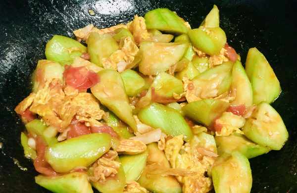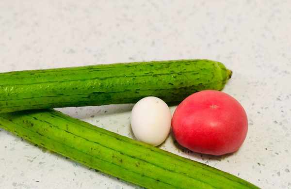 所需食材:丝瓜、番茄、鸡蛋、大蒜、大葱