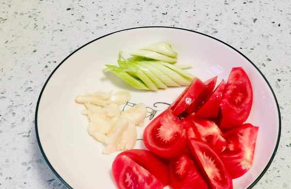 准备一些配菜,不需要太多,常见的大葱、大蒜就可以了,一定要再加上一个西红柿,夏季的西红柿汁水满满,炒出来的菜相当美味儿,尤其是最后剩下的菜汤,蘸着馒头吃,甭提多香了!