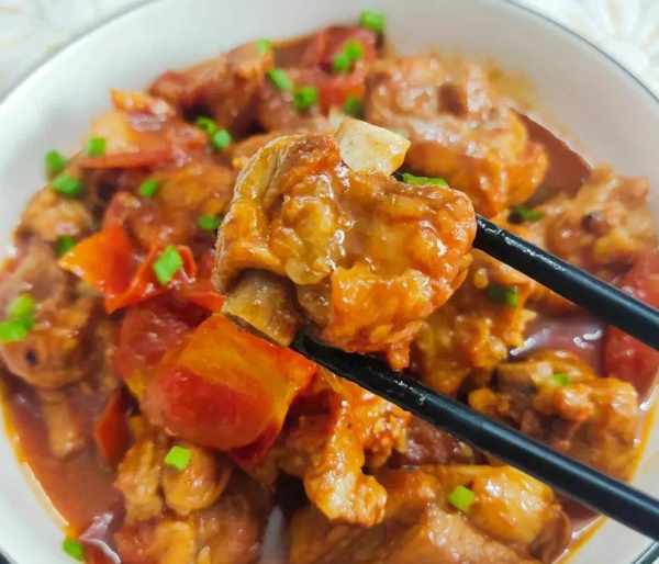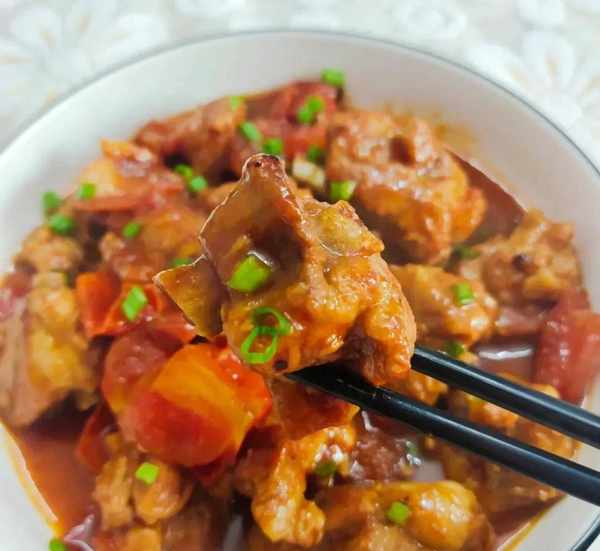 食材:排骨一斤,西红柿2个,姜蒜末、葱花少许。