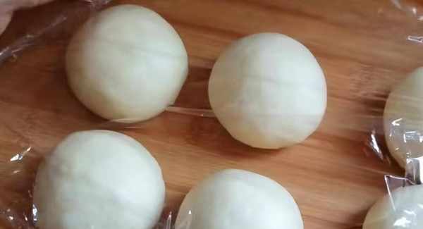 2.面团放置半个小时以后,稍微揉一下,将大面团分成10个等量的小剂子,用保鲜膜盖住,防止我们在做少年糖饼的时候,其他的小剂子有干皮的情况发生;