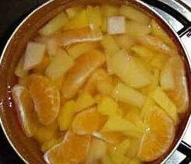 1、剥成瓣,其余切成丁,我又加了一把葡萄干。先将魔芋放入水中煮20分钟。