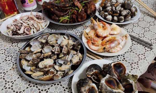 女孩同时来到青岛,看到桌上的菜一脸懵,青岛人是这么吃海鲜的吗?太吓人了。说实话,青岛饭店里的海鲜价格还真不便宜,但是如果自己到海鲜市场买,那就便宜多了。
